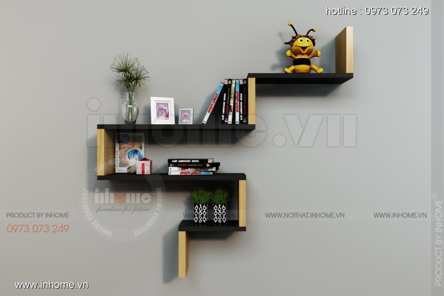 Đơn giản và tinh tế là nét nổi bật trong mẫu thiết kế giá trang trí treo tường 32 của Inhome. Giá trang trí này có hình ziczac, được sơn màu đen cá tính kết hợp màu sơn gỗ tự nhiên rất hài hòa, hợp lý, tạo nên một không gian sống dễ chịu cho gia chủ