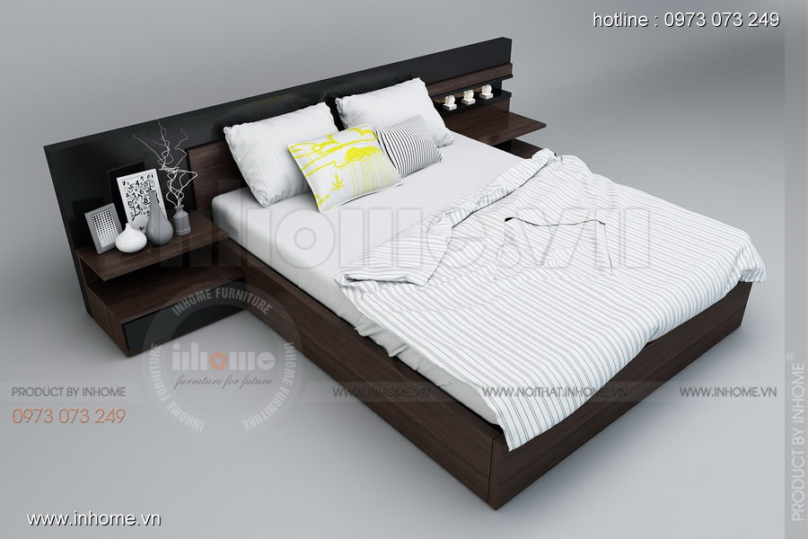 Với thành giường dài, rộng kết hợp hai tab đầu giường cùng tông màu có các kệ ngang để đồ là cách tiết kiệm không gian vừa mang lại sự tinh tế trong thiết kế, vừa mang đến cho người dùng những công năng sử dụng tối đa trong mọi sinh hoạt gia đình.