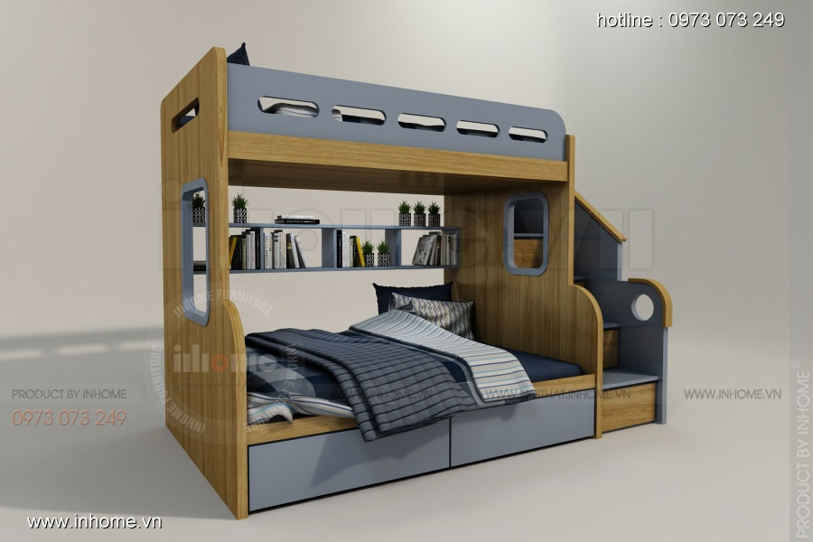 Kích thước và màu sắc sản phẩm giường tầng đa năng hay nội thất INHOME có thể thay đổi theo yêu cầu của khách hàng.
